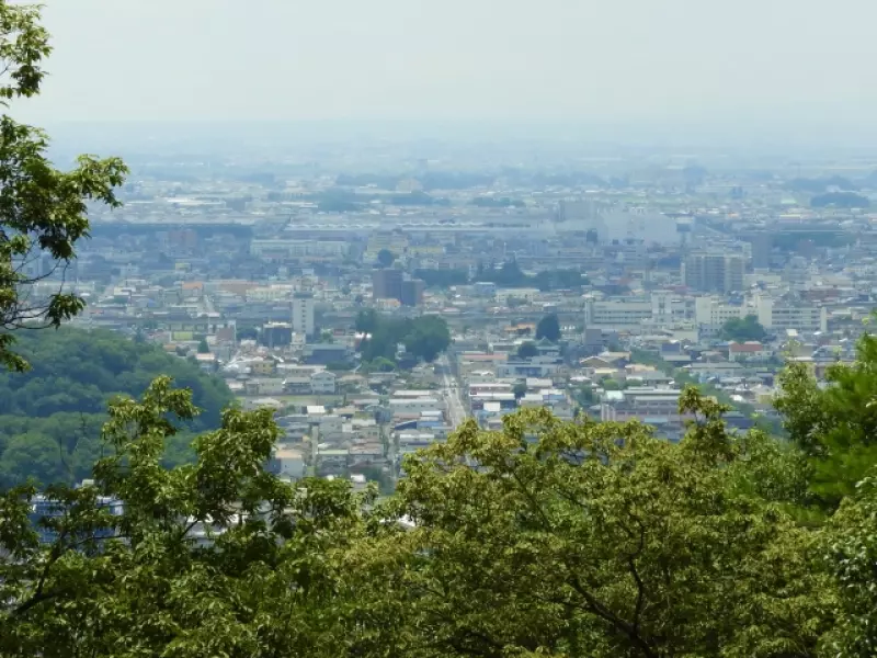 山頂近くの展望台からは、赤城山をはじめ駒ヶ岳、袈裟丸山、男体山などの山々と市街地の大展望が広がります。