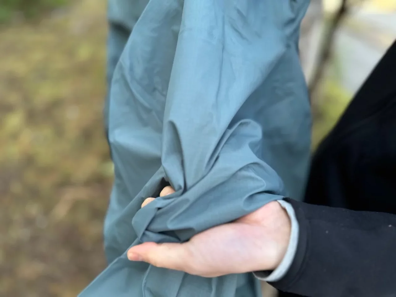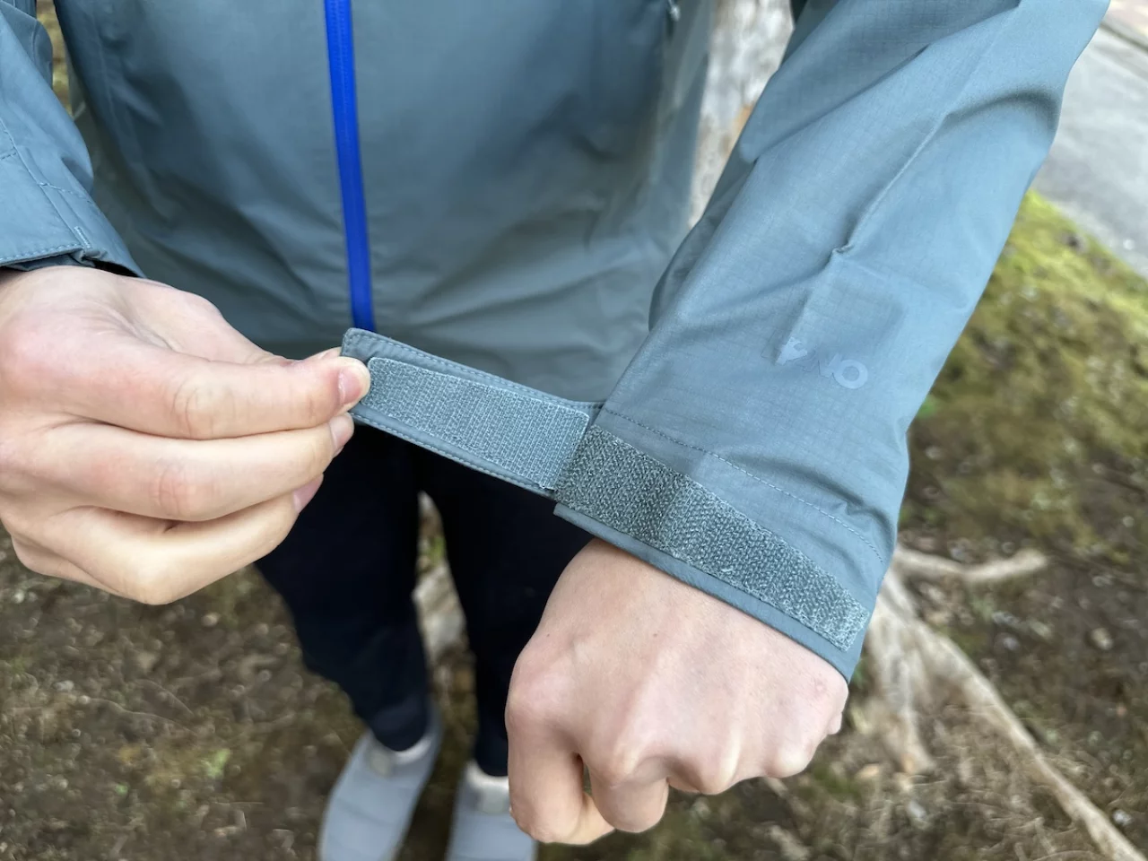袖口はベルクロテープが施されており手首にフィットします。トレントシェル3L・レイン・ジャケット同様、ストレッチ素材が全く使用されていないのでベルクロテープを必ず使用して手首からの雨の侵入を防ぎます。