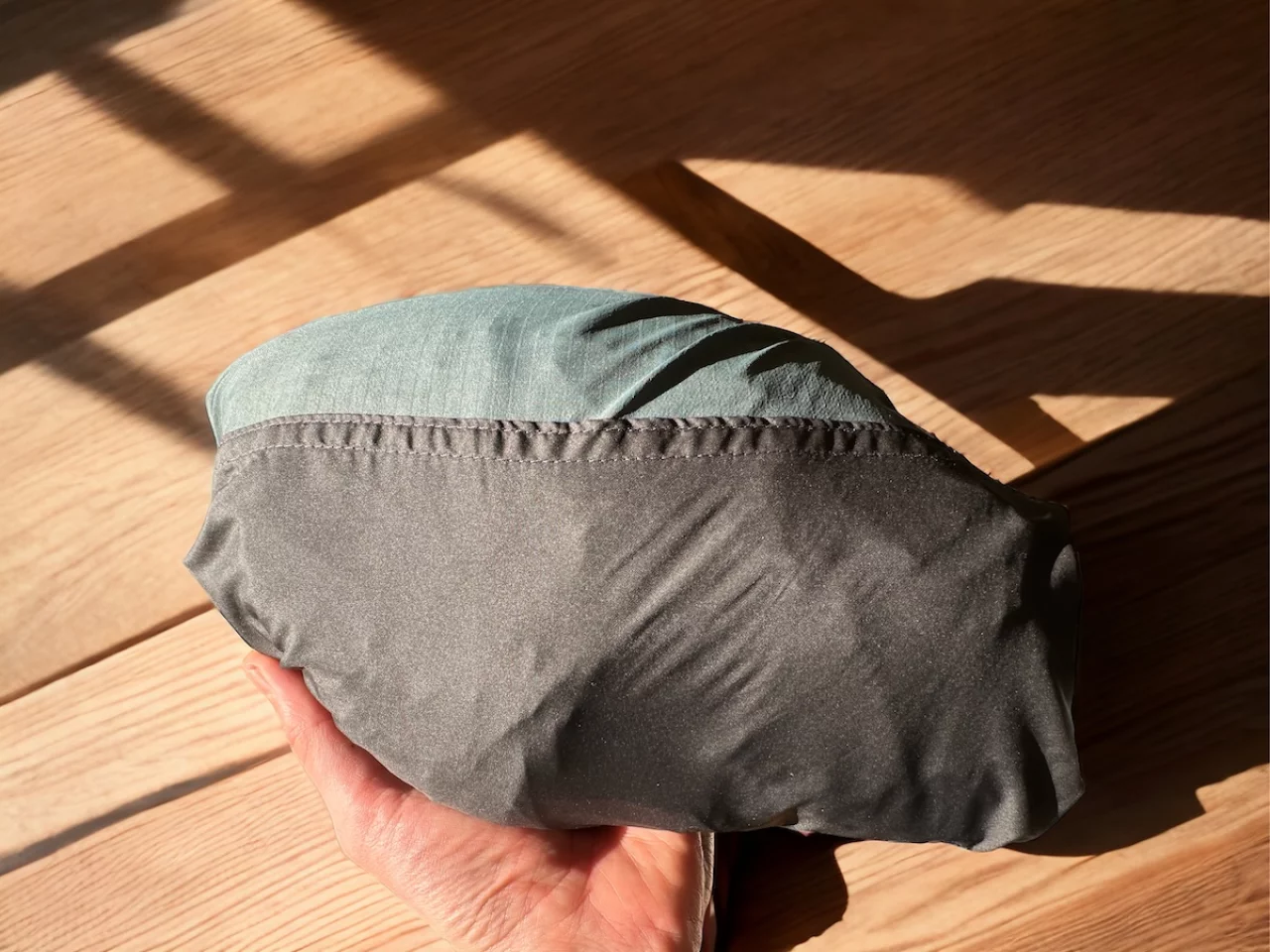 左胸のポケットはパッカブル用ポケットにもなっており素材がしなやかなので、比較的容易にパッカブルすることができますパッカブルをすると幅約24cm、高さ約14cm、厚み約10cmの大きさになります
