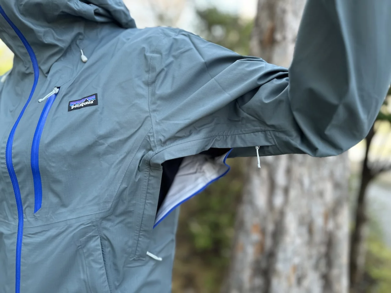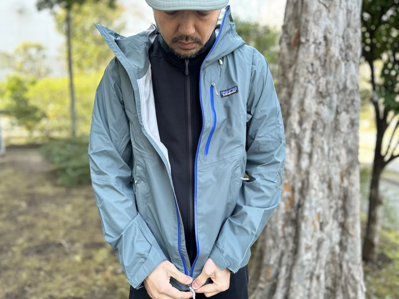 重量はMサイズで400gで、パタゴニアの定番レインジャケットとして知られるトレントシェル3L・レイン・ジャケットと同じです。なので比較されることが多いモデルなのですが、比較についてはまた別の記事で紹介をします。