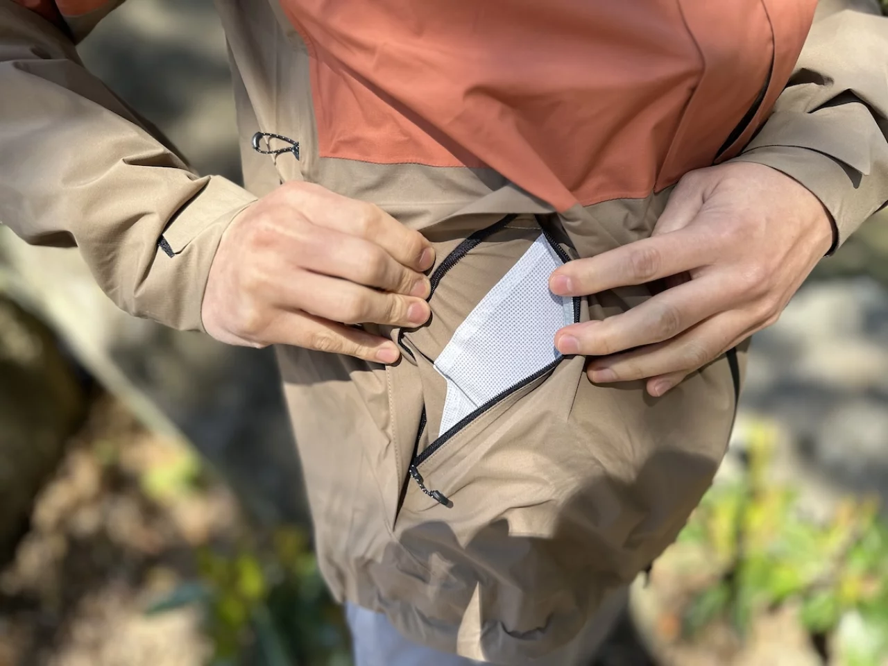 アウターパスPRO2.5レイヤージャケットもパンツもユニークなデザインで優れた通気性を兼ね備えています。この通気性の高さとハードなアクティビティにおいての着心地の良さについて紹介をしていきます。まず初めにジャケットから紹介します。