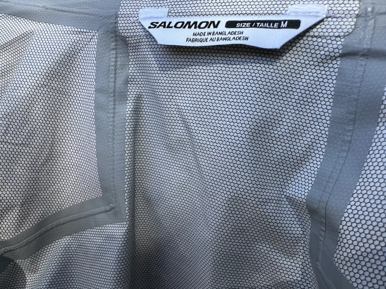 今回紹介するサロモンのレインウェア『アウターパスPRO2.5レイヤー』は、40,000g/㎡・24時間以上という、様々なメーカーのレインウェアと比較しても高い透湿性を備えています。素材はサロモンが開発した『ADV-SKINDRYbreathe』と呼ばれる2.5レイヤーで軽量かつしなやかな着心地が特徴です。