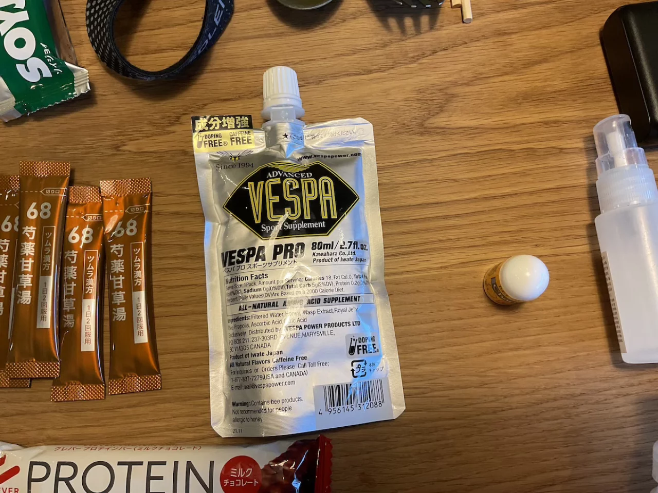 VESPAS PROをもしもの時のために携行しています。今までこのような効果的なスポーツサプリを摂取したことがない人は、初めて飲むと驚くと思います。今までの疲れが吹っ飛ぶように力がみなぎって行動することができます。体がこのようなスポーツサプリに慣れてくると効果が薄れてきてしまうのですが、栄養が足りず動けなくなってしまうような時に体感を変えるのにあると安心だし便利です。エマージェンシー的な位置づけです。