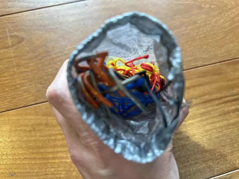 僕が使用しているガイラインは太さ1.3mmのUHMWPE製のものです。UHMWPEとは超高分子量ポリエチレン(UltraHighMolecularWeightPolyEthylene)のことで、非常に高い耐久性があります。わずか1.3mmで193kgの強さで引っ張っても引きちぎれません。また吸水率が0.01%以下と低く、水を使用する部分に最適の素材なので雨に降られても雨をふくんで重くなりづらい特徴も備えています。