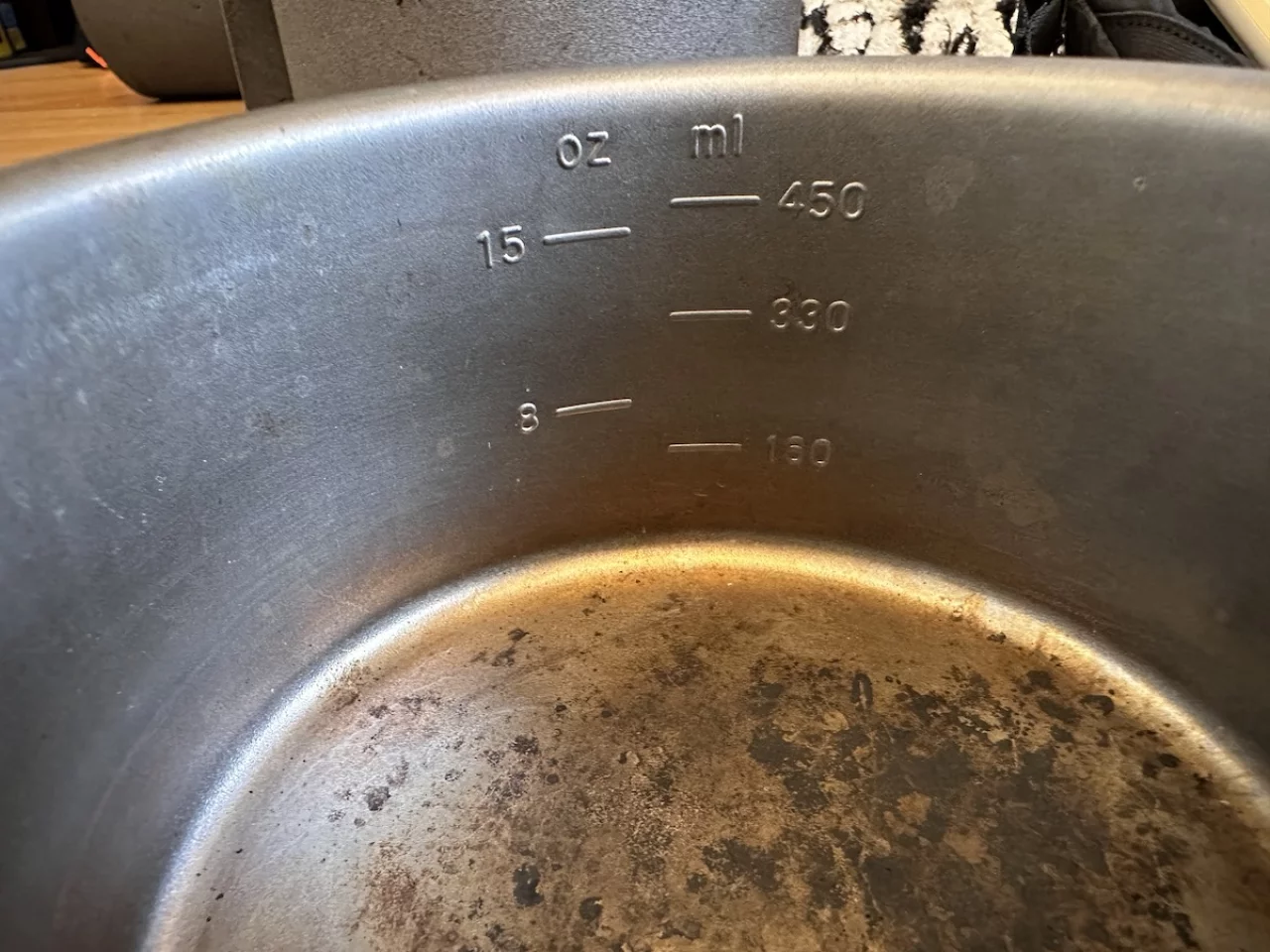 クッカーの内側には160,330,450と3つのメモリがあり、これを覚えておくと便利です。