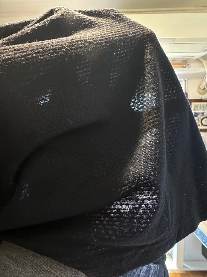 背中全面と脇がメッシュ素材のTシャツは、汗を吸った瞬間に素早く拡散するメッシュを背中と脇に備え、さらには通気性に優れているので、いつまででも肌がドライな状態を維持してくれる登山やトレイルランニングで汗っかきの人にとてもおすすめです。メッシュ部分もメリノウールとポリエステル50%の混紡比率で、匂いも軽減します。一度着用したらやみつきになること間違いなしのTシャツです。