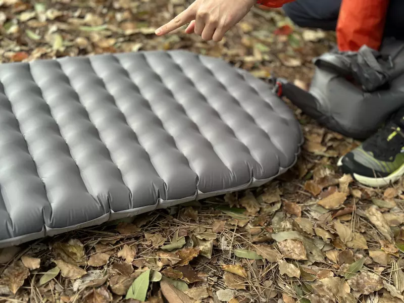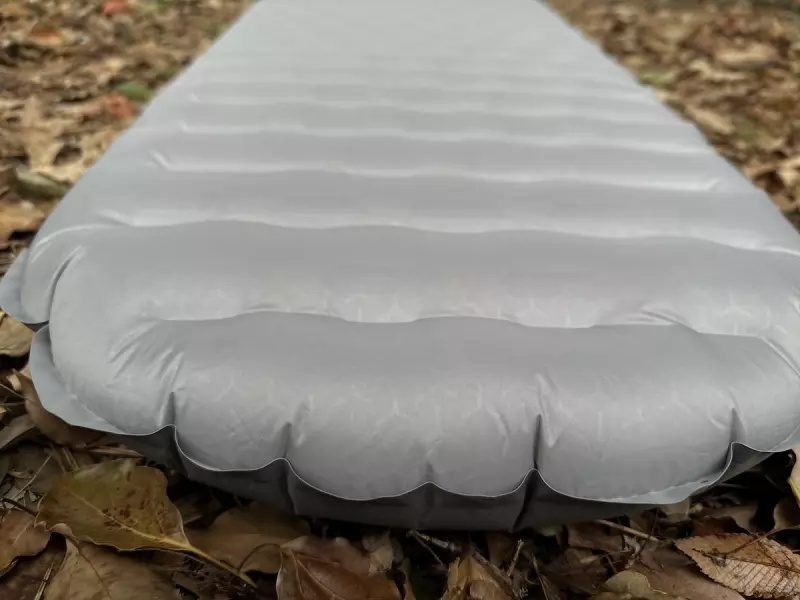 重量が370gで、且つR値4.3という高い数値を叩き出せるのは、非常に軽量で独創的な生地と特徴的な構造を採用しているからです。非常に軽量な生地と言っても登山で使用するエアマットとしての耐久性は維持されています。