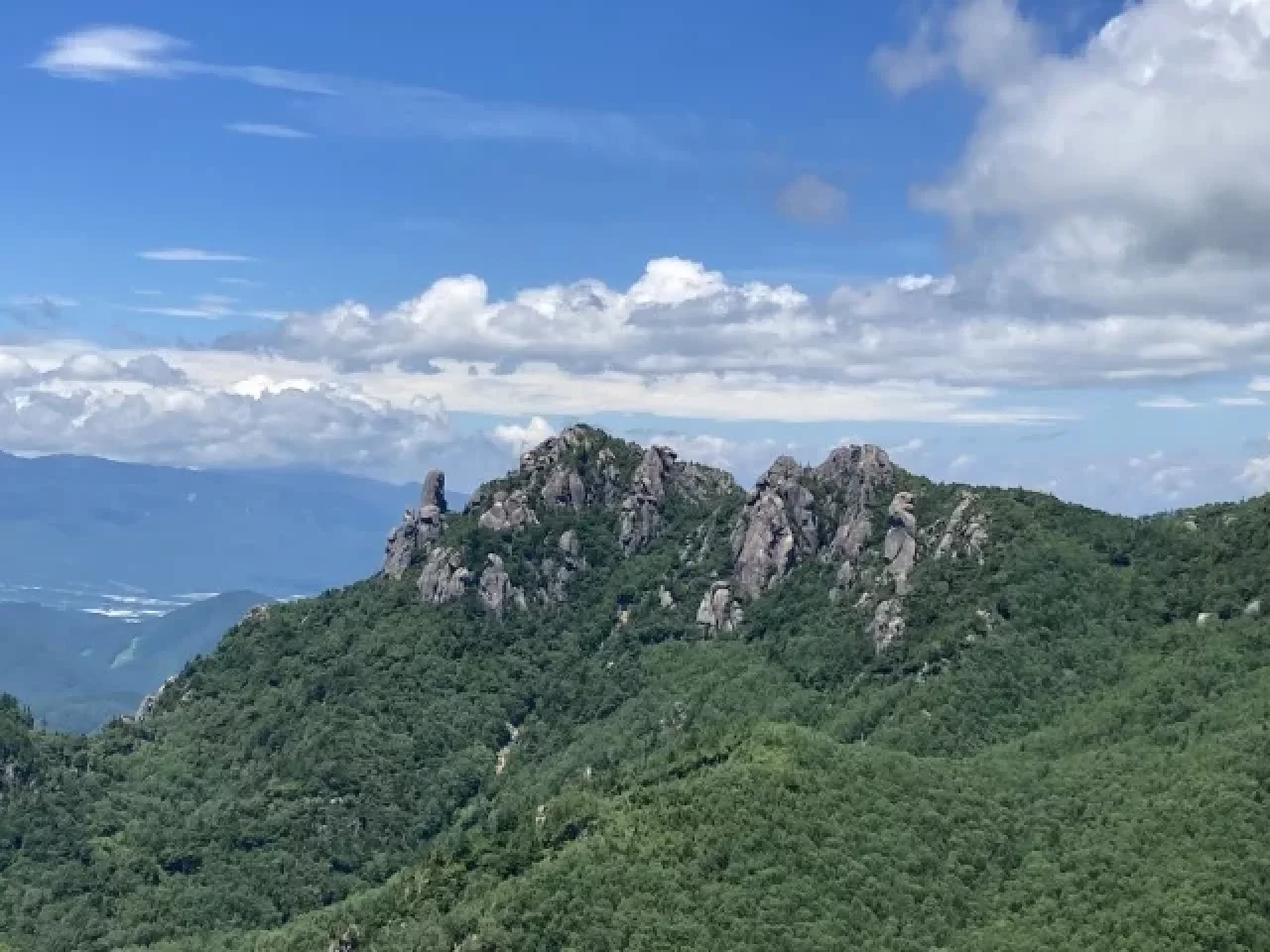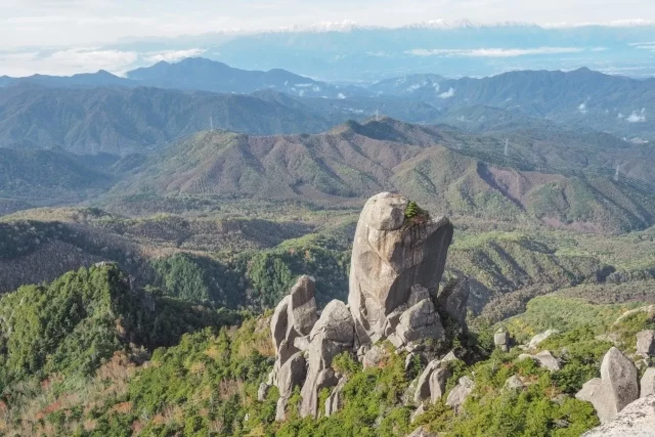 それゆえロッククライミングでも有名な山で、富士山や南アルプス、中央アルプスから北アルプスまでまさに絶景を楽しめる山です。真っ二つに割れた桃太郎岩、大ヤスリ岩、弘法岩や十一面岩などの奇岩が見られます。