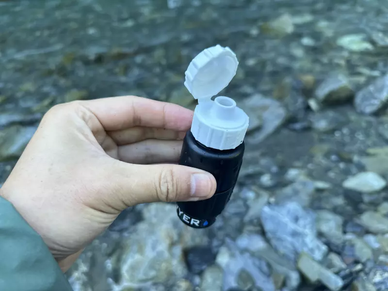 浄水器は、様々なモデルを使ってきましたが、フィルターが大きく水の出が良いこと、フィルター孔がソーヤーマイクロスクィーズフィルターを使っています。特に水場が少ない山、水場があったとしても出ているかよくわからない場合、長期縦走登山時にはもしもの時のために携行するようにしています。