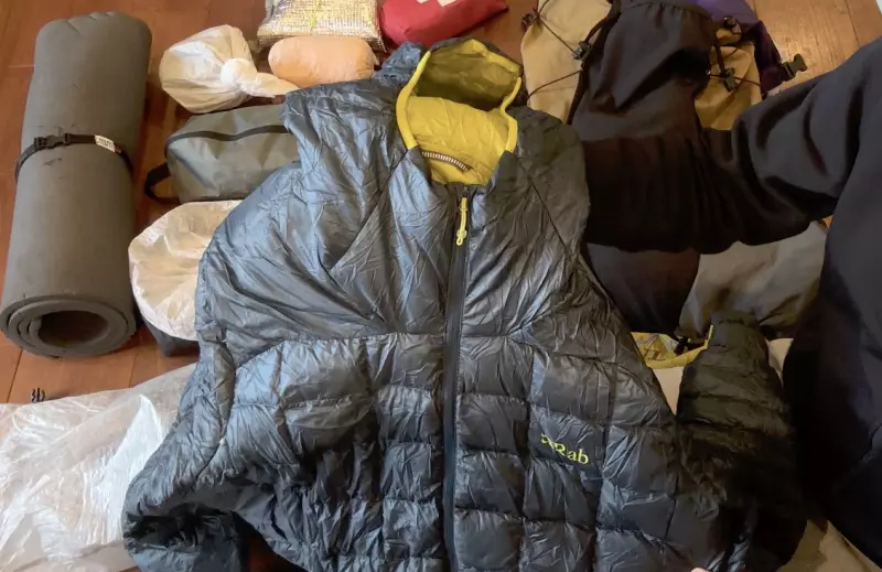 夏山の防寒着においては最軽量級のダウンジャケットとダウンパンツをセレクトしています。フィルパワーが高いものだと軽量化を行うことができます。