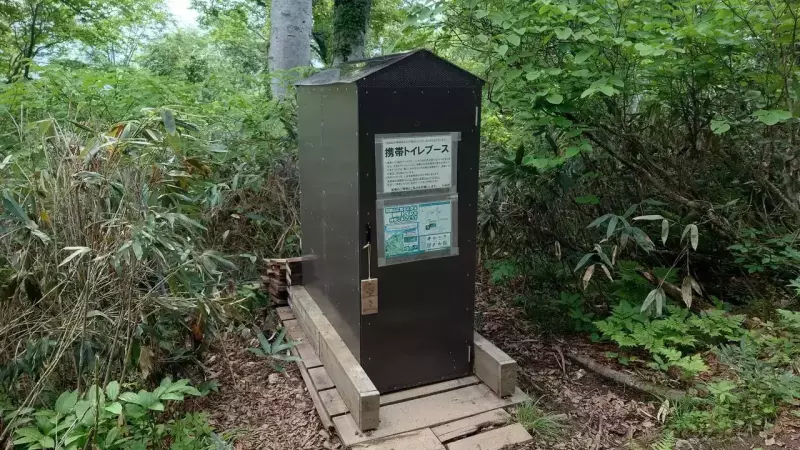 登山口にトイレと売店があるのでしっかり準備をしてから入山しましょう。登山ルート上に携帯トイレブースが設置してあり、ここで使用した携帯トイレを登山口付近の回収ボックスに廃棄できるシステムになっています。(登山口に携帯トイレの自販機があります)