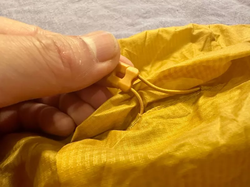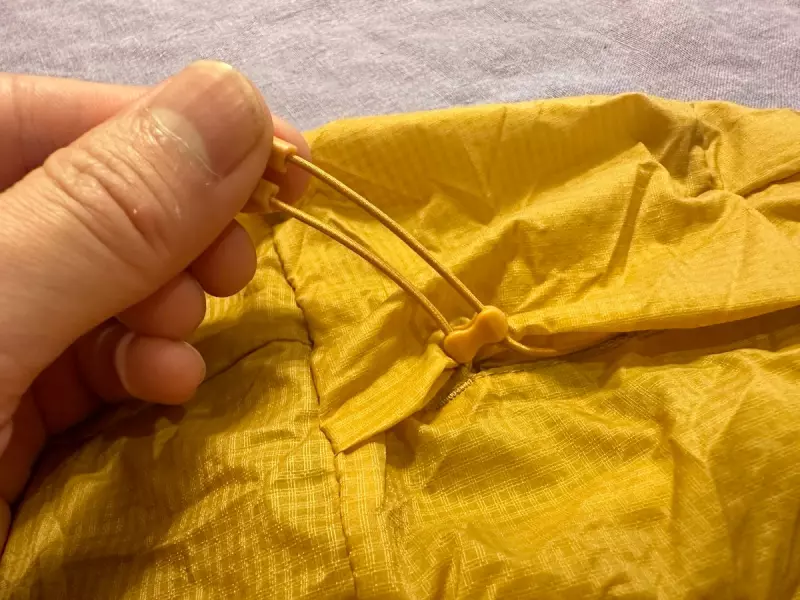 裾には右手側部分の内側にドローコードが備わっており、このコードを使って裾から侵入する風を防いでくれます。