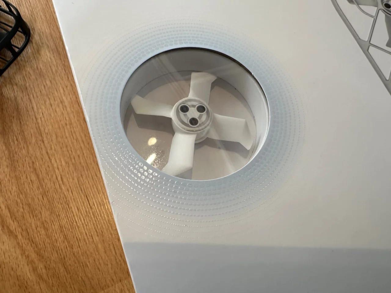 重量はわずか99gで、以前のモデルよりも16%小さくなってプロペラブレードは低騒音で作られていることが箱に書かれています。