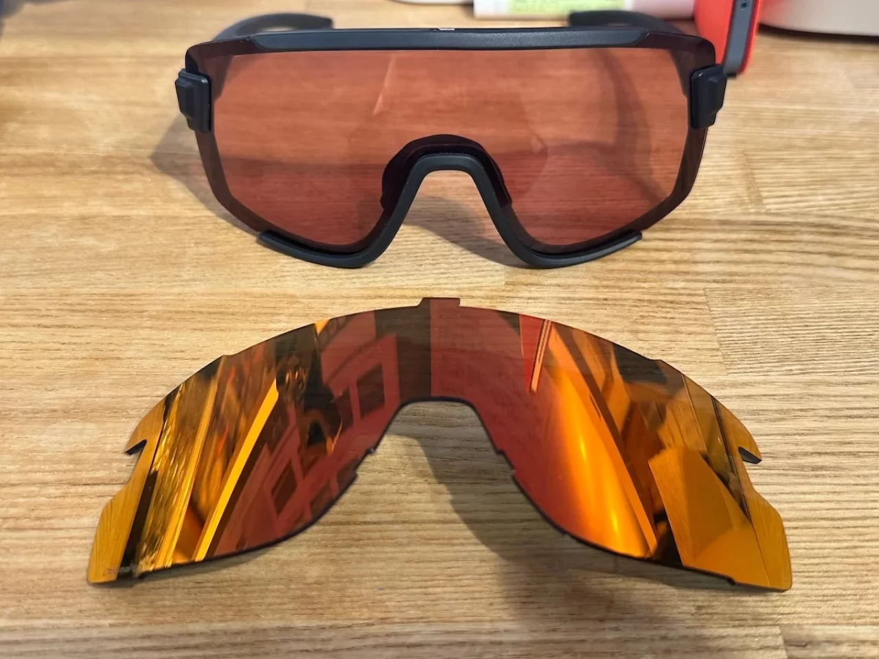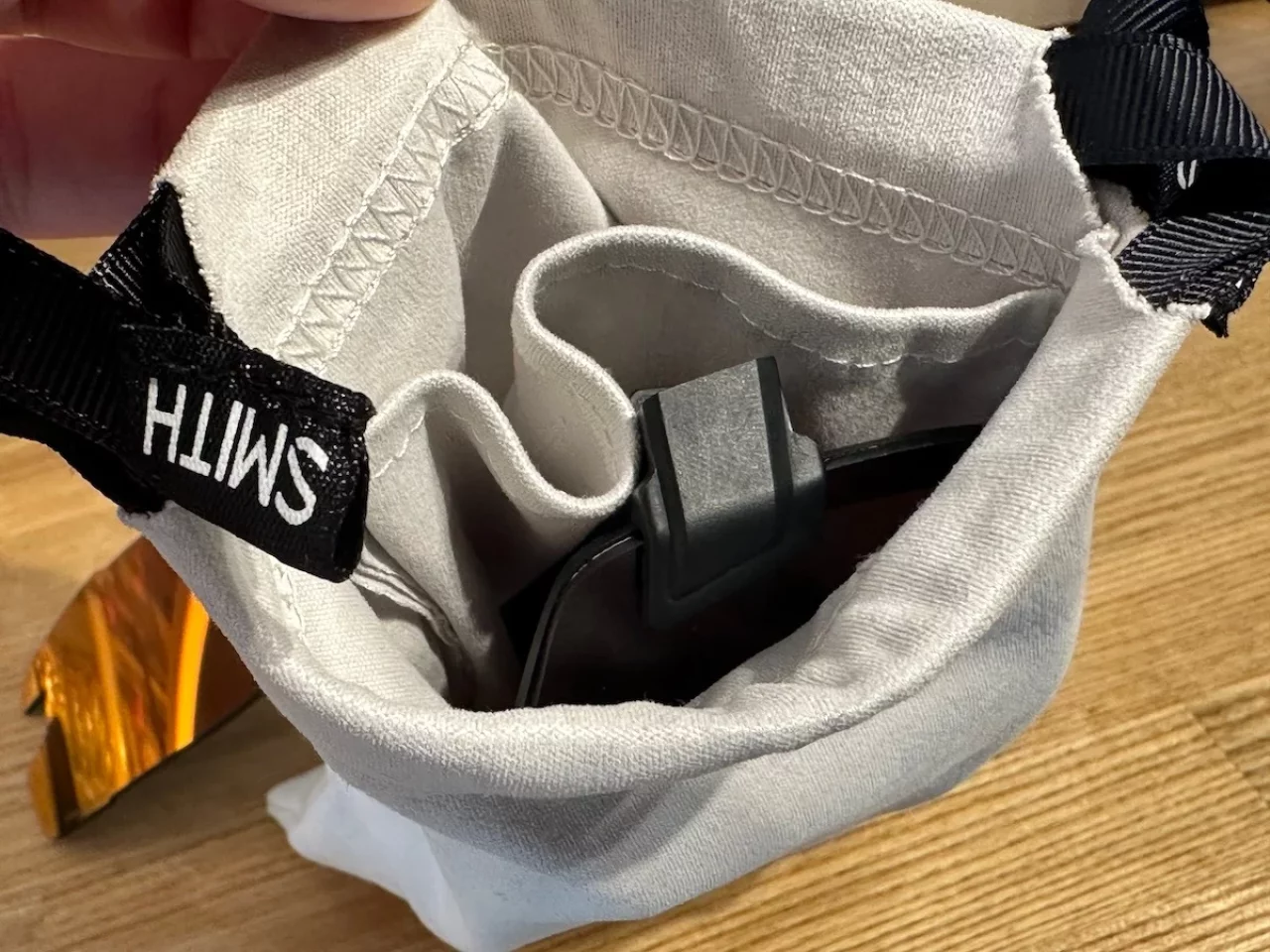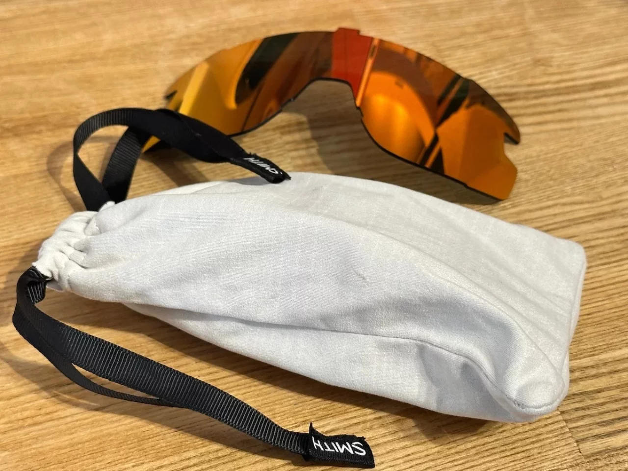 サングラスを収納する袋はレンズ拭きにもなるので、スキーや登山でサングラスを装着する時は必ず収納袋も持っていくようにしています。中は仕切りがついているので交換レンズも一緒に持っていくこともできますが、何かの拍子に割れたら怖いので交換レンズは持って行っていません。