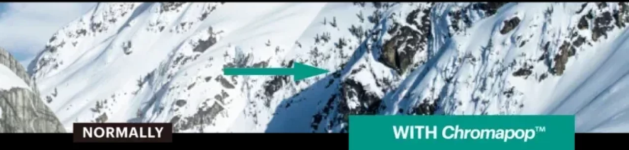 クロマポップは他のレンズと異なってコントラストが高く、特に雪山で雪の凹凸を視認することが重要なバックカントリースキーでは安心感の高いレンズです。