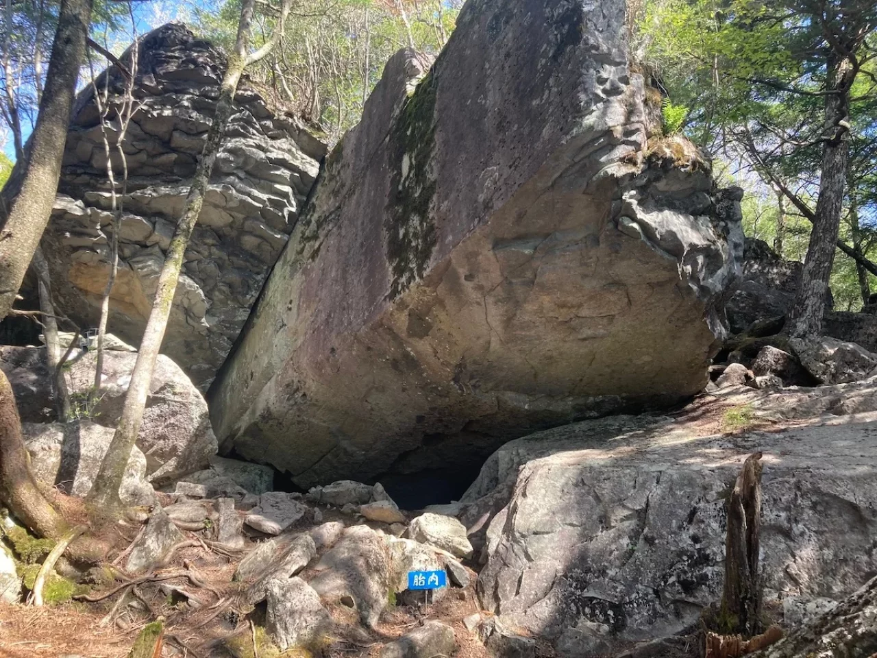 名前の付いた岩の中でも一際大きいのが「胎内」という岩で、中を通って別の場所に出る事ができる岩です。
