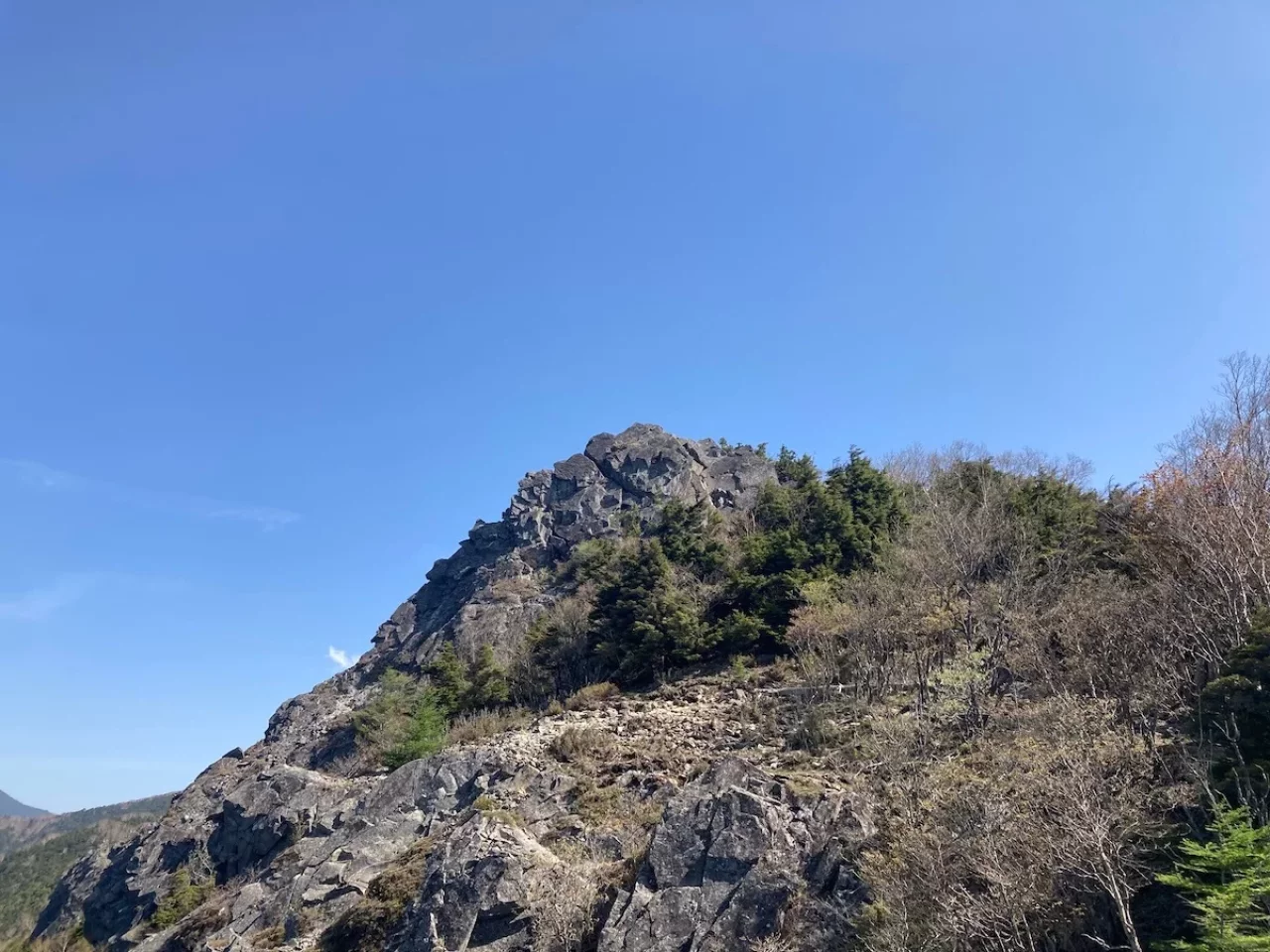 雨乞岩までくると、山頂が見えてきます。山頂には休憩できるようなスペースが少ないので、山頂で休憩を取ろうと思っている人はこの雨乞岩のあたりで休憩をしてから山頂を目指すのがおすすめです。