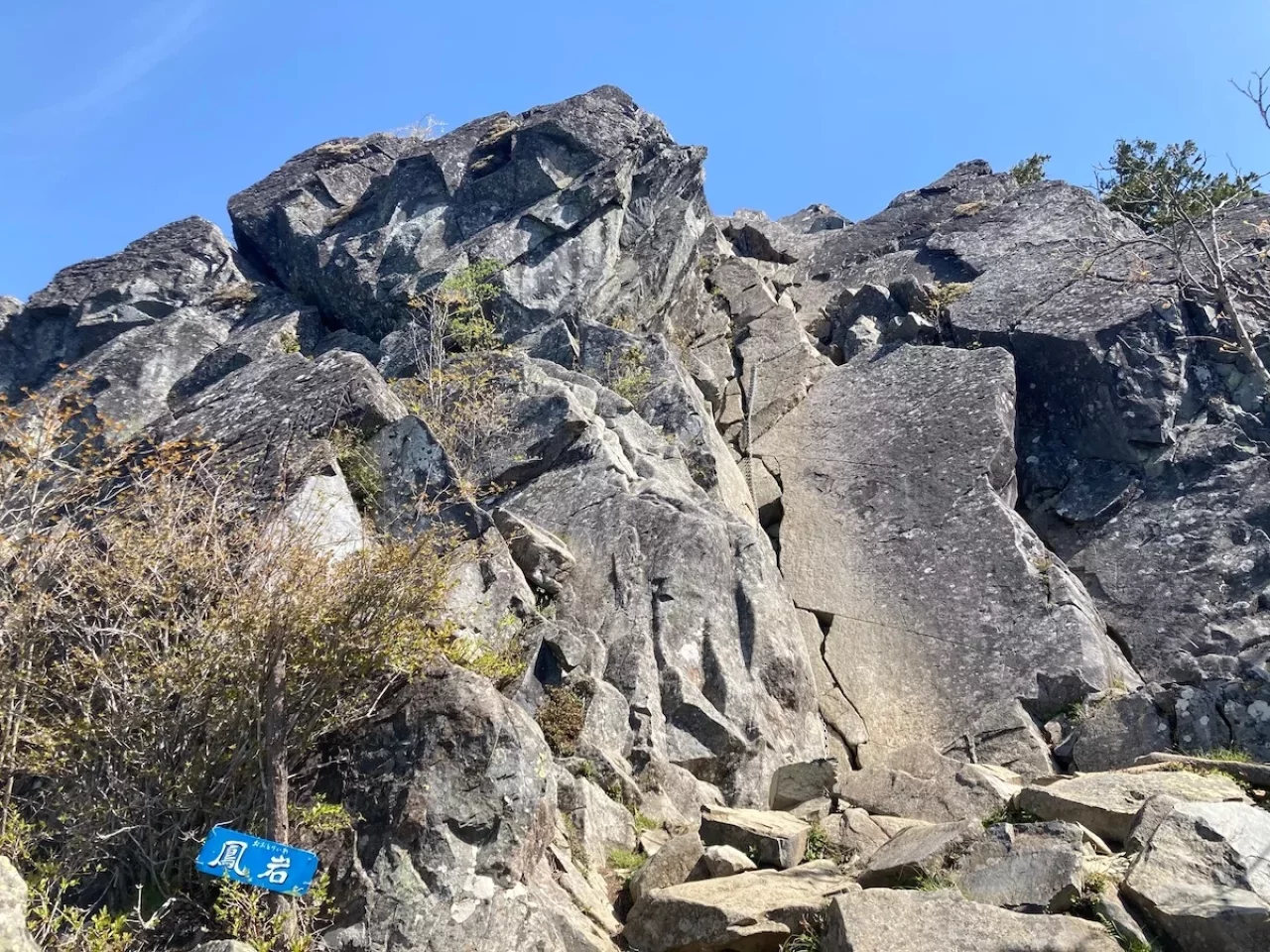 雨乞岩を通過すると現れるのが「鳳岩(おおとりいわ)」これを登れば山頂なのでまさにラスボス的な大岩です。