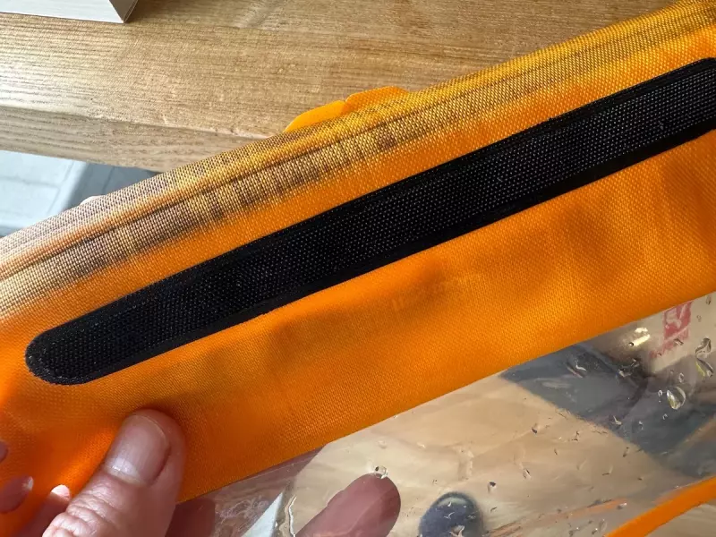 水に沈めた後は420デニールのオレンジ色の部分のナイロンが若干保水しました。またベルクロテープ部分は濡れても粘着力が衰えることはありません
