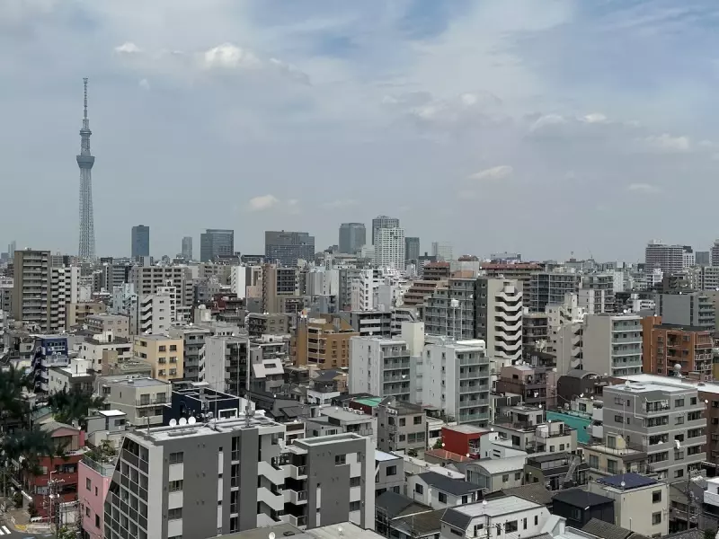 実際に雨で濡れたと仮定できるような周りが濡れている状態のポーチの中にスマートフォンを入れて街の景色を撮影してみました。