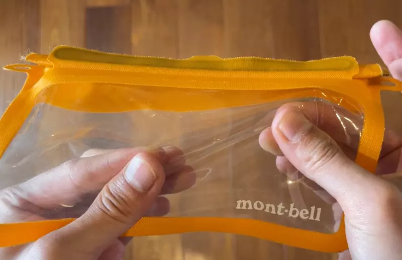 モバイルドライポーチは、素材に420デニールのナイロンと、透明な部分にはTPU素材でラミネート加工によって圧着されています。これによって縫い目をなくし、縫製部分からの水の侵入がない製品となっています。