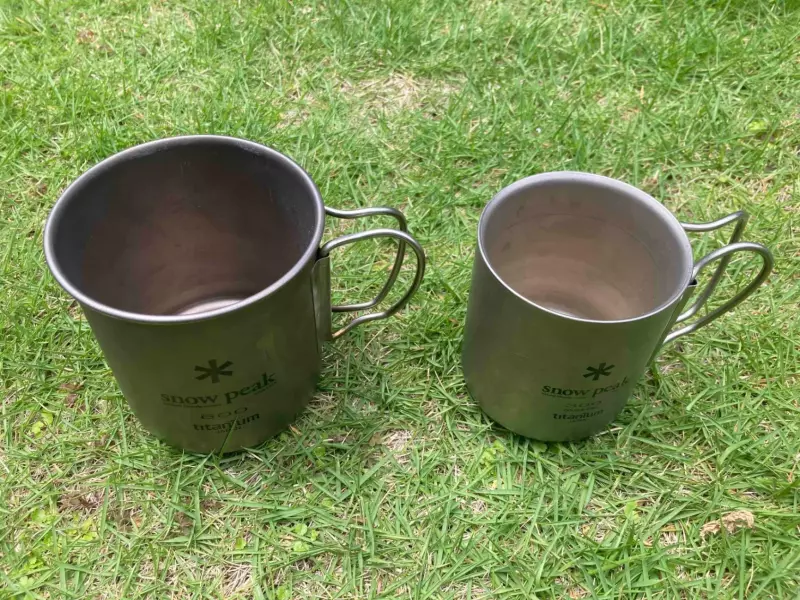 筆者はさまざまなタイプのコップを使ってきましたが、いまは600mlのチタンカップと、120mlのプラスチックカップを併用しています。