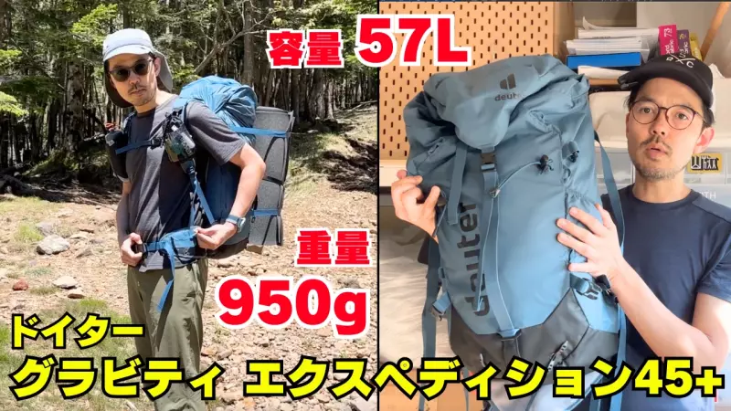 - グラビティ エクスペディション45+:容量57Lで重量950g