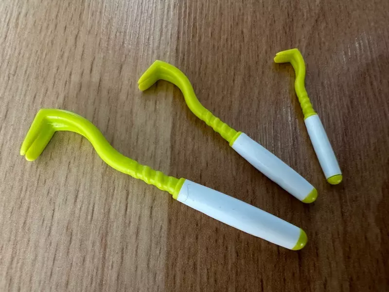 TickTwisterは3種類の大きさが1セットになったもので、大2g、中1g、小0.6g、全部合わせても3.6gと非常に軽量なアイテムです。そして使い方も簡単でマダニと肌の隙間に差し込んで、くるくる回してマダニを除去することができます。ピンセットだと強く引っ張らないと抜くことができないので非常に不安になります。