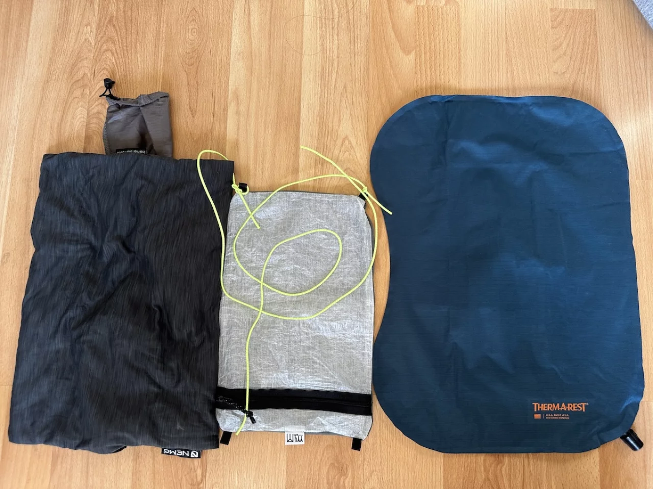 上の比較表をみると最も軽量なモデルは21gの山旅・ダイニーマ製リバーシブルピローです。サイズについてはアンダーウェア、Tシャツ、ソックス、タイツや短パンなどを収納するのにちょうど良い大きさで設定されているのに対し、サーマレストとNEMOの枕は、少し大きめに作られています。