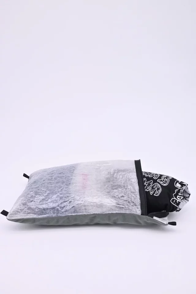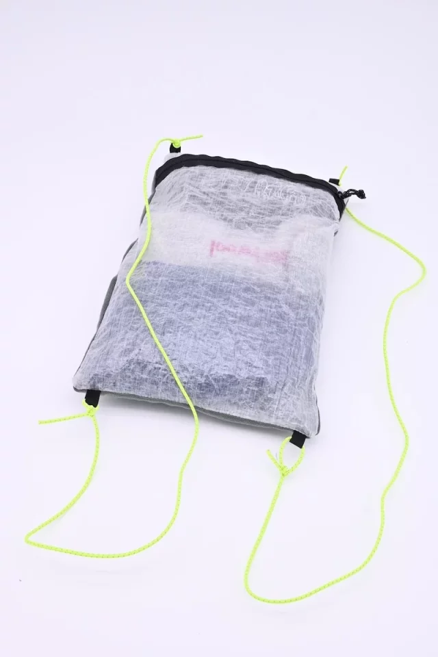 テント場に到着したらこのスタッフバッグの中に入れた服に着替えて、スタッフバッグを裏返しにして、行動していたウェア類を枕のカサを作るために収納することができます。高さを調整したい場合はその他にレインウェアやタオルなどを入れます。