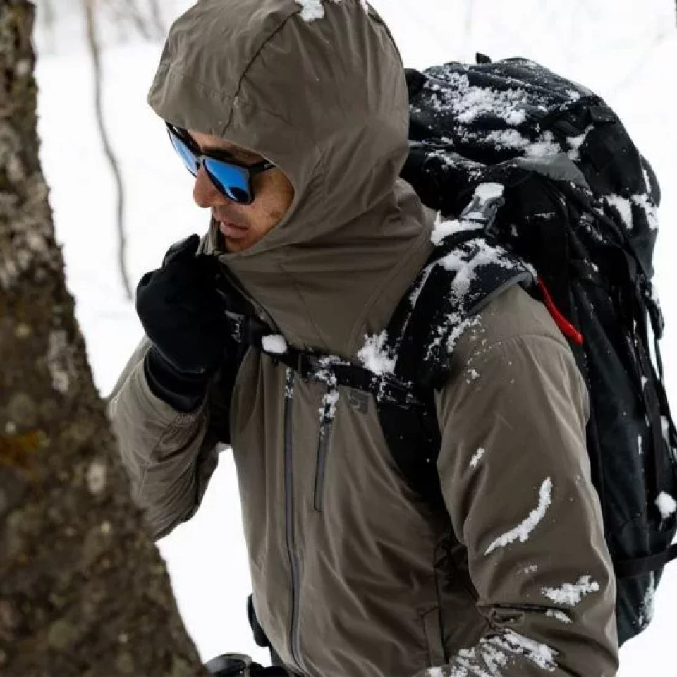 「ハードシェル」は名前通り、硬く厚い素材で作られたアウターのことです。雪山登山やスキーでの着用が想定されており、嵐や吹雪のような過酷な天候下で、風・雨・雪をシャットアウトします。