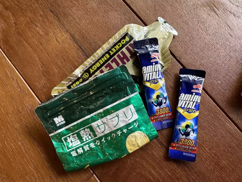 これ以外にもタンパク質バー、スポーツようかん、アルファ米なども持参しました。