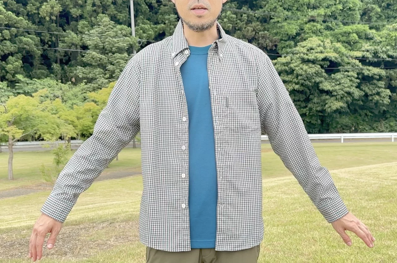 ミドルレイヤーにセレクトしたのはWIC.ドライタッチロングスリーブシャツです。このシャツは吸水拡散性に優れたウイックロンドライタッチを使用しており、汗をかいても素早く乾いて肌をドライに保つ特徴ある素材を使用しています。