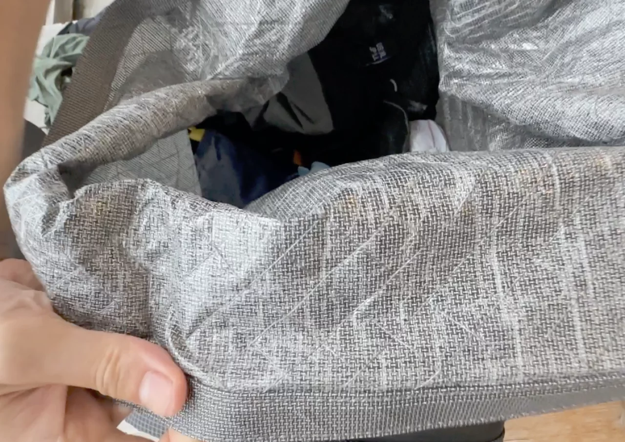 素材にはUltra200とUltra400と呼ばれる「ChallengeOutdoor」社が開発したUHMWPEを含む新素材で、UHMWPE(67%)、完全リサイクルされた高強度ポリエステル(33%)に、防水性のフィルムを内側にラミネートして構成されています。200という数字は生地の厚さでデニール表記されています。