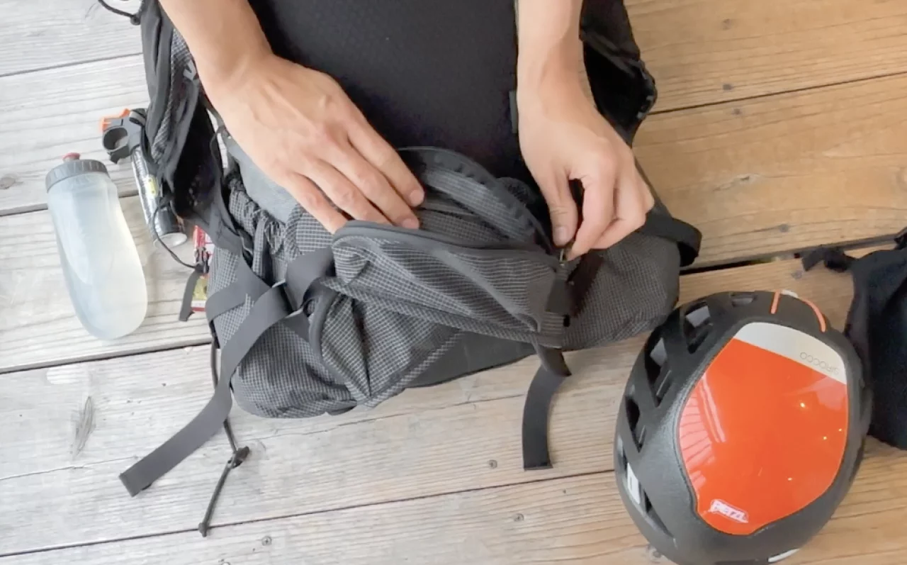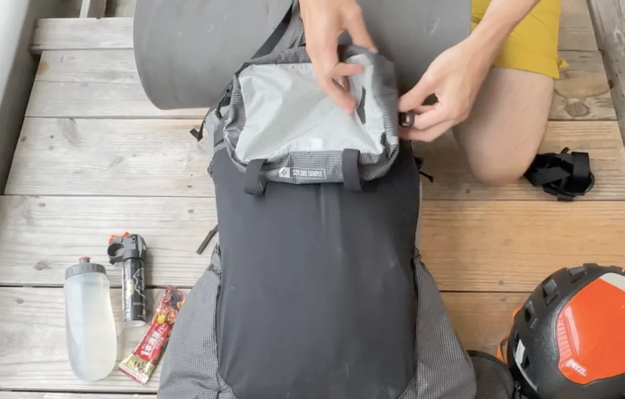 ザックのサイドに設けられた大きなポケットの上部のストレッチバンドは強いのであやまって入れたものが落下しない安心感はありますが、例えばチェーンアイゼンやサングラスケースなどの少し大ぶりなものを収納すると出す時に引っかかるので取り出しづらいというデメリットがあると思いました。ここも好みが分かれるポイントだと思います。