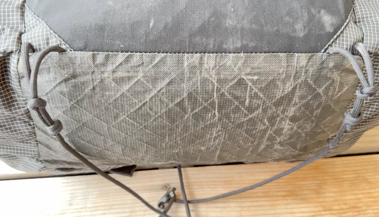 この素材とダイニーマとの大きな違いは引裂強度がUltraが約3倍、UV耐性による色やけ防止がUltra方が高いとされており、ザックでの使用に置き換えてみると、岩場の多い登山や紫外線の強い稜線上を長い時間歩くと言ったシーンに適した素材と言えます。