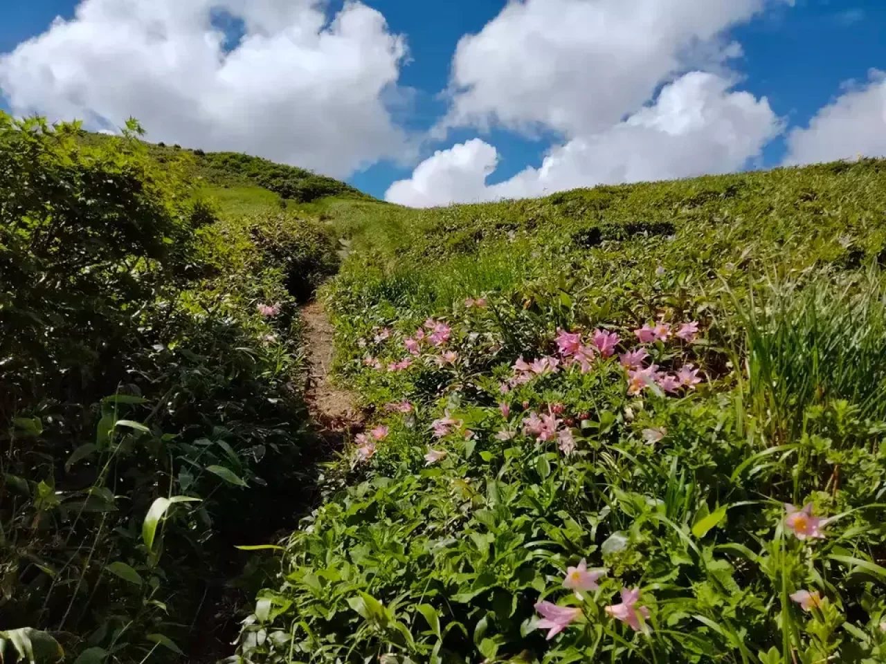 ヒメサユリロード。このルートは花好きにはたまらない、高山植物が咲き乱れています。