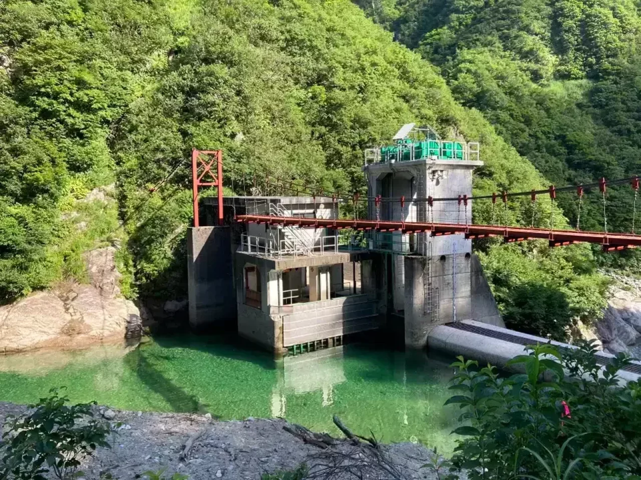つり橋は2か所、ひとつ目は冷水沢橋は4/10地点。揺れるので慎重に。