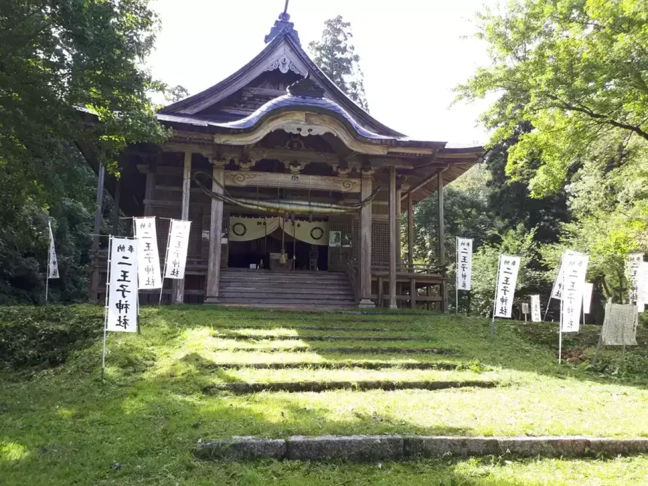 二王子神社は天保七年の創建から2度焼失し、現在の本殿は昭和42年に再建されたものです。境内にはキャンプ場が併設されており、拝殿が管理棟になっているという珍しい神社。