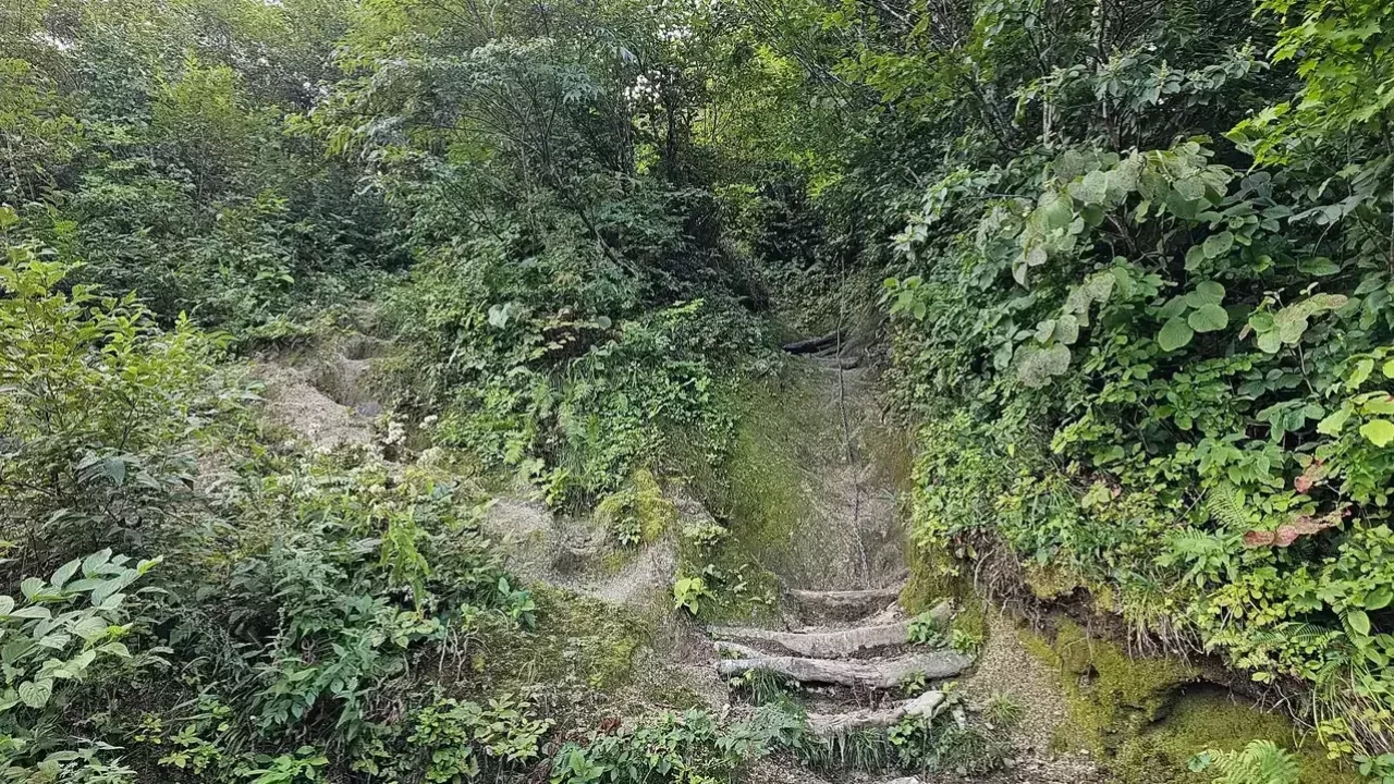登山道は麓の二王子神社からのみ開かれているので山頂まではこの一本道を進んで行く形になります。よく整備された山で足場はしっかりしているため安全に登ることができます。唯一、鎖がかけられた箇所が1ヵ所ありますが問題なく登れます。