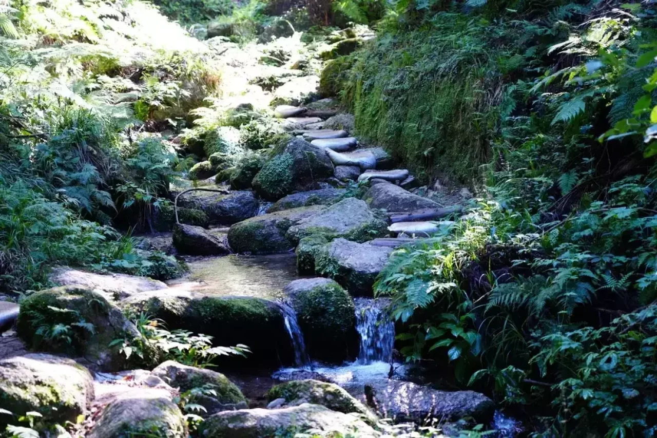 最初は気持ちのいい沢を渡ったりしながら進みます。濡れた石の上は滑りやすいので注意して登りましょう。
