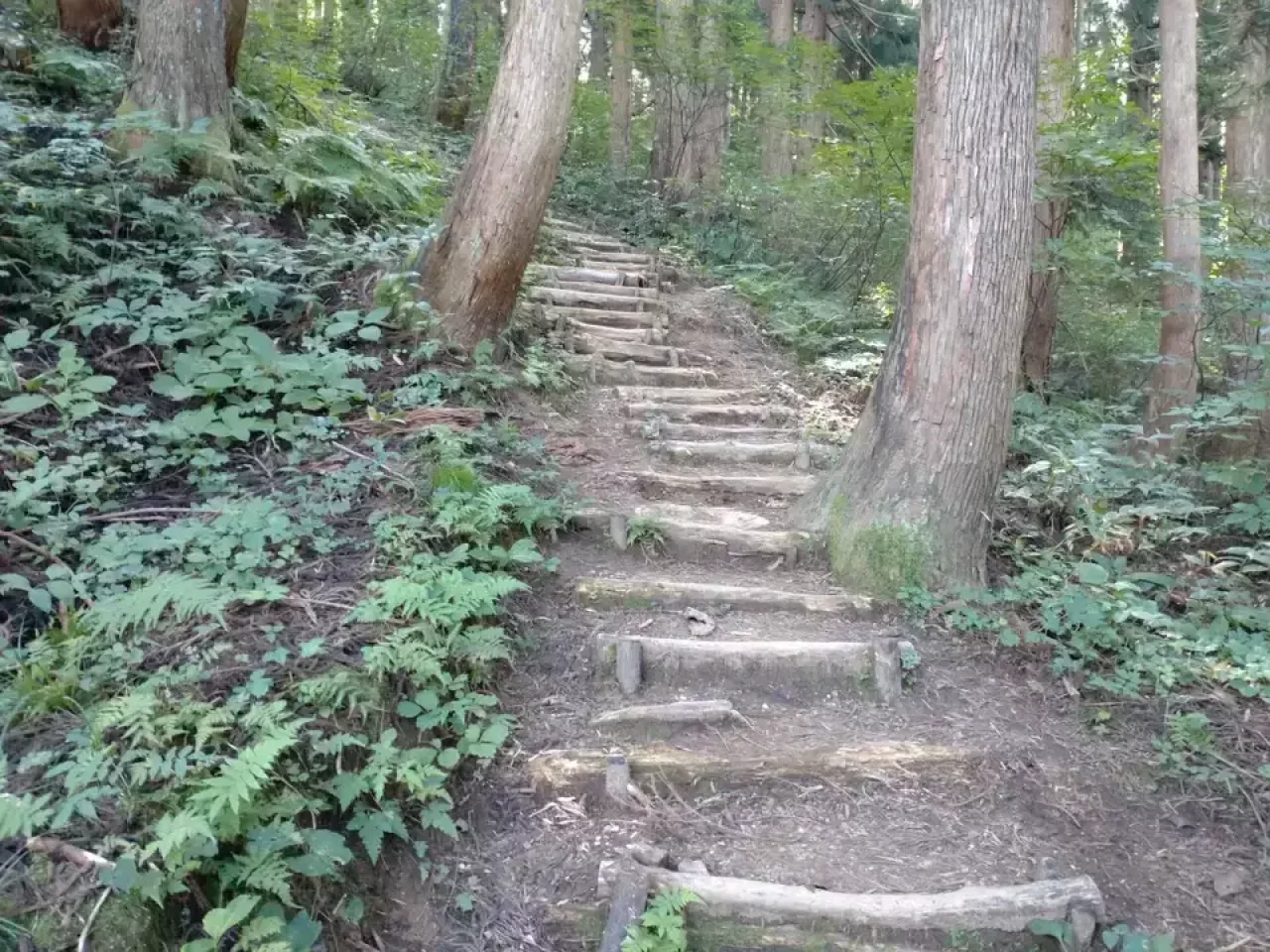 この管理、整備された登山道。ここまで手入れが行き届いている登山道は他に知らないという声多数。階段が意外にキツイですが六合目からは緩やか、そしてまた階段が続きます。