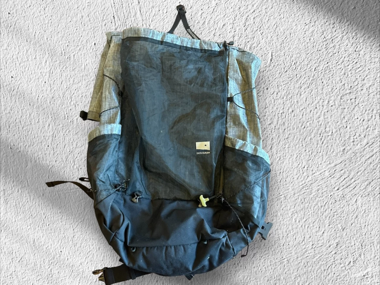 最後にザックはゼログラムのLOSTCREEKUL40に、山旅のボトルホルダーとスマホポーチを取り付けています。この状態で重量が1440gです。僕はショルダーハーネスにポケットが付いているタイプはポケットのサイズが自分が使っているボトルに合わなかったり、ポケットの数が多すぎるなどして使いづらいと感じることが多く、シンプルなショルダーハーネスのザックが好みです。