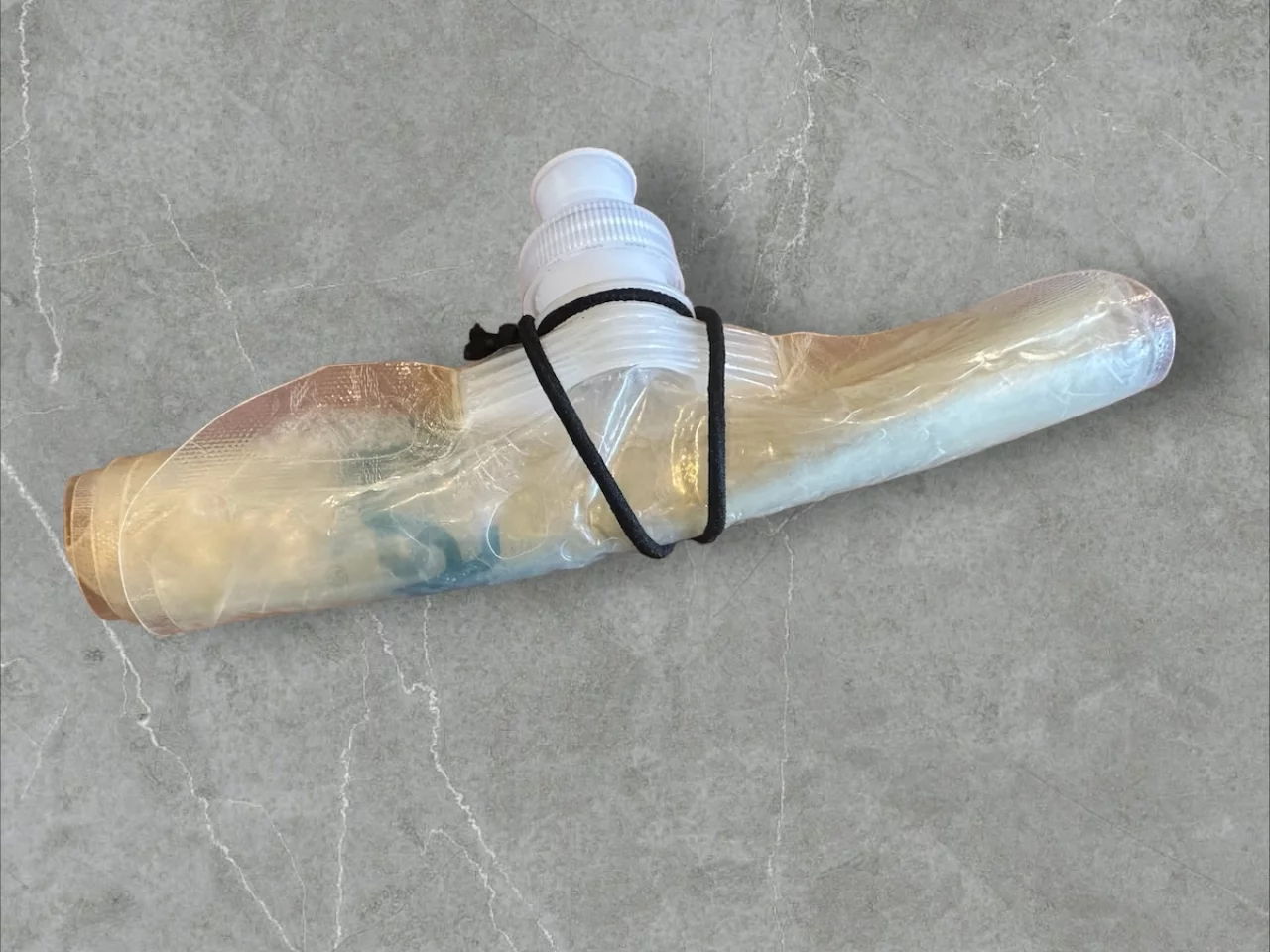またストラップを使用すれば肩からかけることもできるし、スタンドコジーについているゴムバンドを使えばウエストベルトに固定させることもできます。またジップロック飯は自作なので、中に甘さが少ないマルトデキストリンを入れれば糖分摂取も可能です。さらには最もカロリーが高い油を追加するなど、自由に栄養調整をすることができるのが、最大のメリットです。