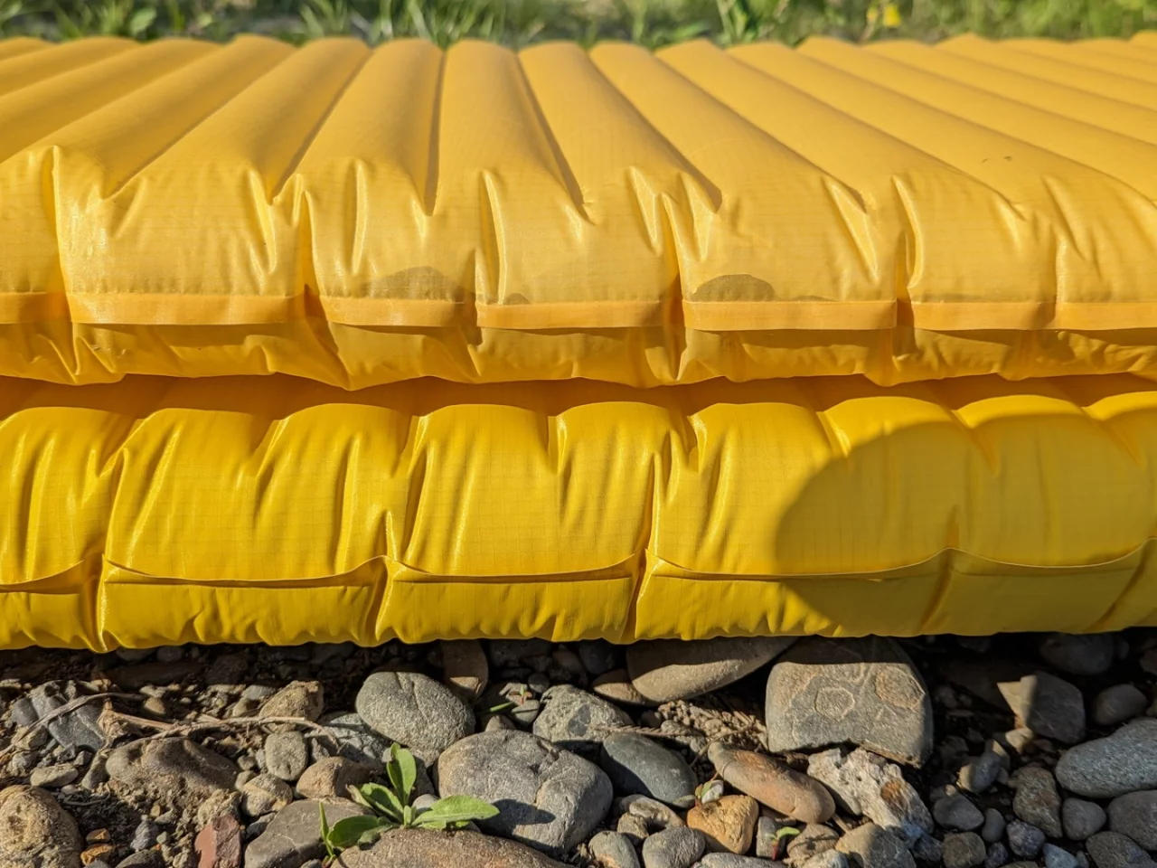 エアマットはレギュラーサイズと呼ばれる長さ183cmのモデルで、おおよそ370gです。サーマレストで最も人気が高いネオエアーXライトNXTが370g、NEMOのテンサートレイルレギュラーマミーが369g。Rabのウルトラスフィア4.5はレギュラーサイズで370gです。