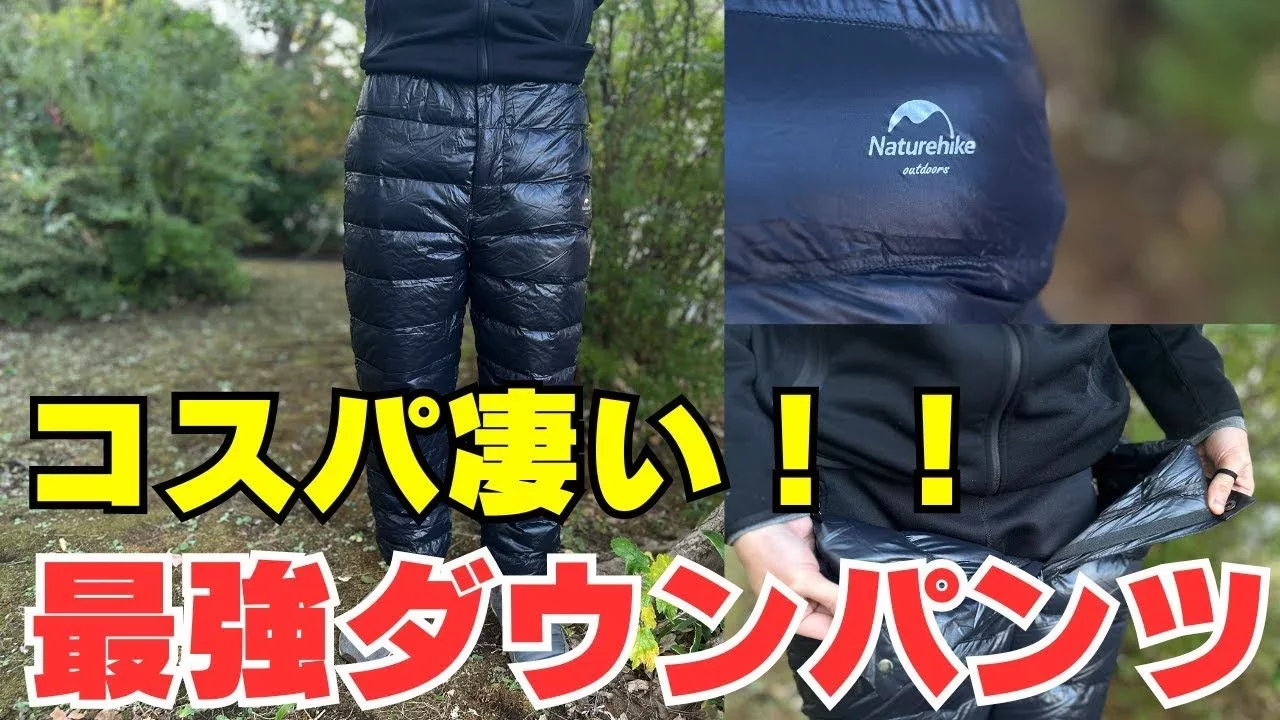 軽量でコストパフォーマンスに優れたダウンパンツはネイチャーハイクのものがオススメです。YOUTUBE動画でも細かく特徴を紹介しているので合わせてチェックしてみてください