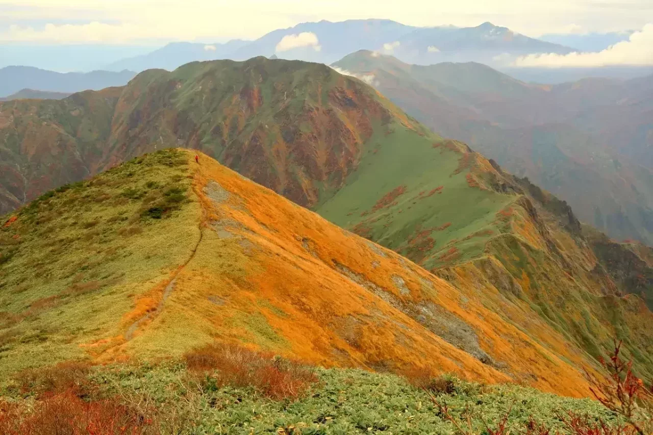初心者は谷川岳ロープウェイウェイを利用して山頂に向かう天神尾根ルートがおすすめです。紅葉シーズンはロープウェイから色づいた山が眺められ、山頂からは大パノラマが広がります。