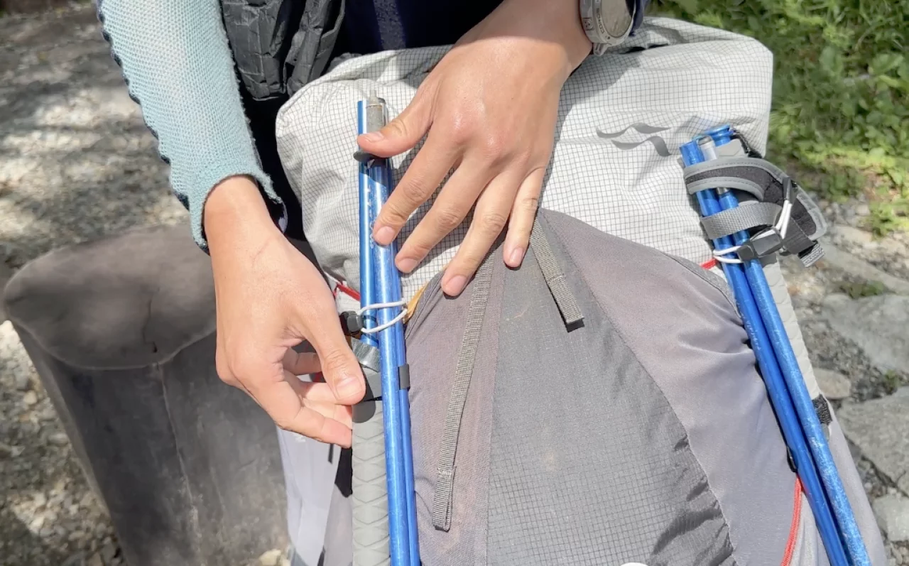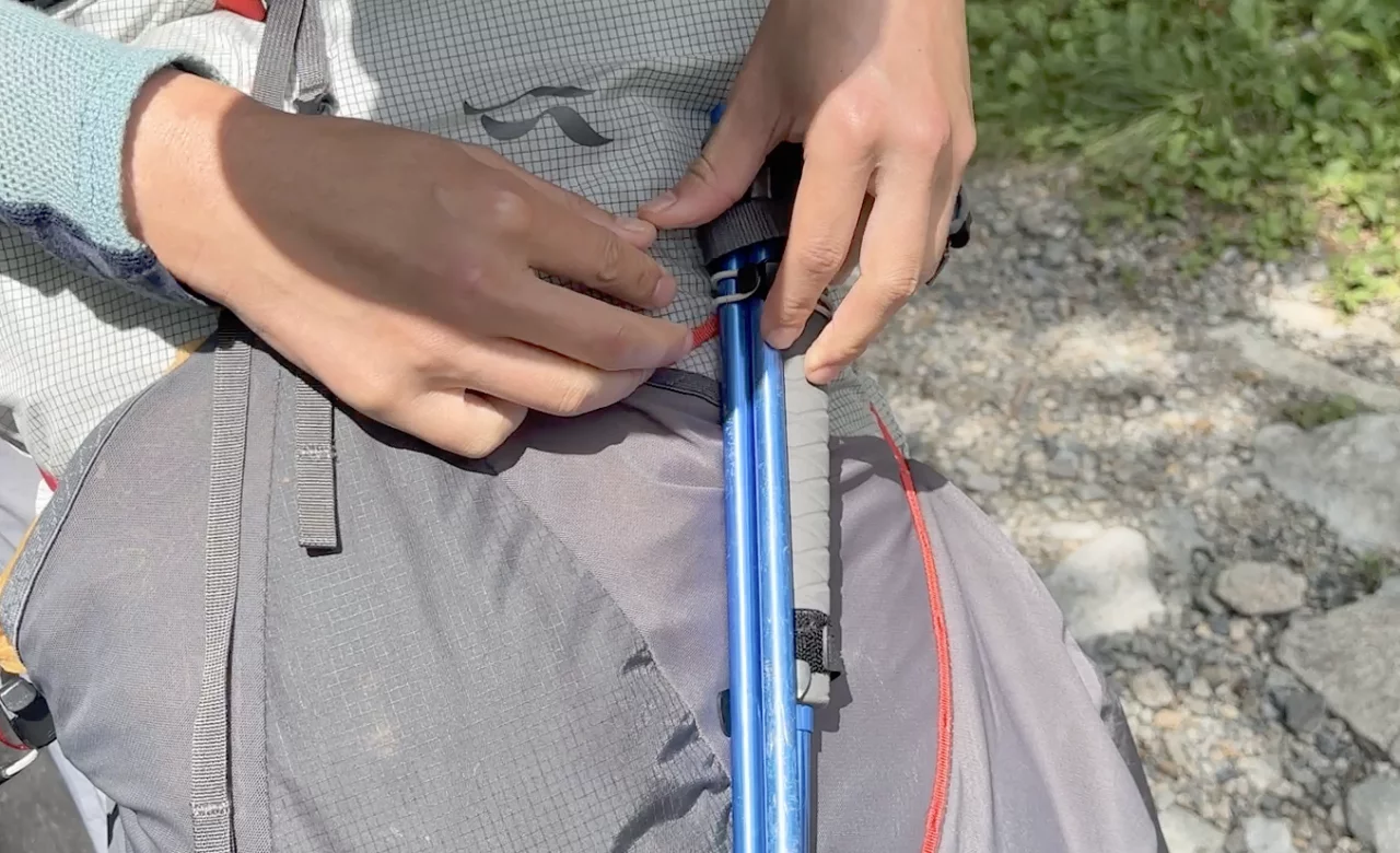 これから岩場が多い登山道であるというタイミングで休憩をして、トレッキングポールを素早くザックに固定させることができたり、稜線に出て長い歩きが始まるというタイミングで、トレッキングポールを使い始めたりするのに一切ストレスを感じることがなかったです。