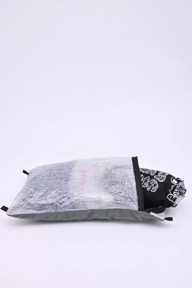 これら5つのアイテムはザックの中で濡れないように専用のスタッフバッグに収納しています。着替えを収納する役割もありますが、着替えた後のウェアを収納する役割もあります。これは寒い季節であればウェアが凍ってしまわないように、またダウンウェアと汗で濡れた行動着と接触して濡れないようにすることができます。