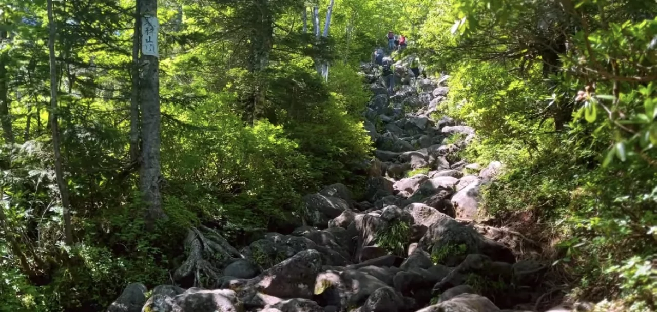 歩きやすい原生林やゴロゴロとした急登等、登山者を飽きさせないコース。